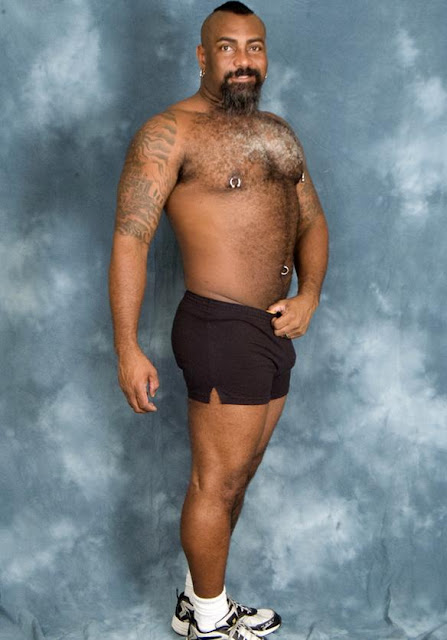 Extremely hot. Love the gray patch on his chest: yummy. My favorite part though are his legs, they are just lovely. My only complaint, and this is a personal preference, I do not like the piercings. Other than that, he is great.